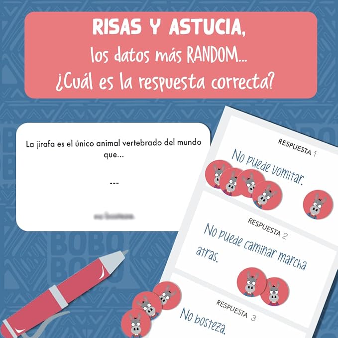 El juego contiene 440 preguntas locas e inusuales y 32 fichas.